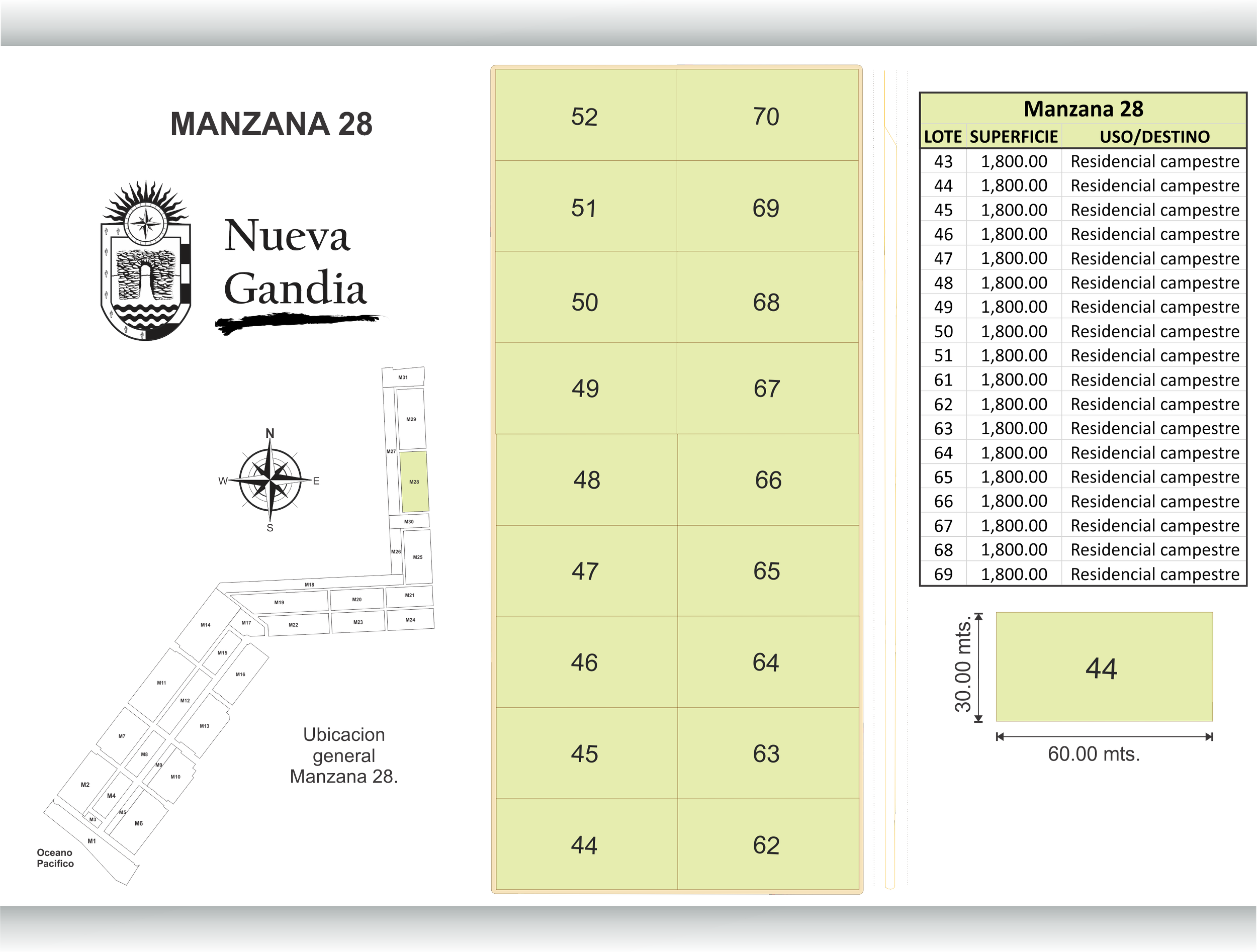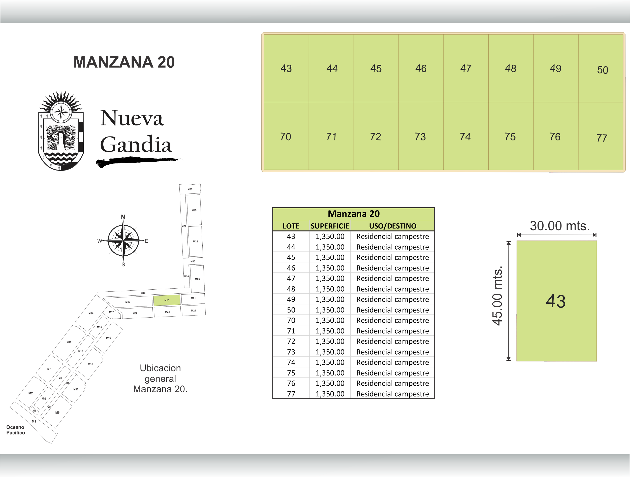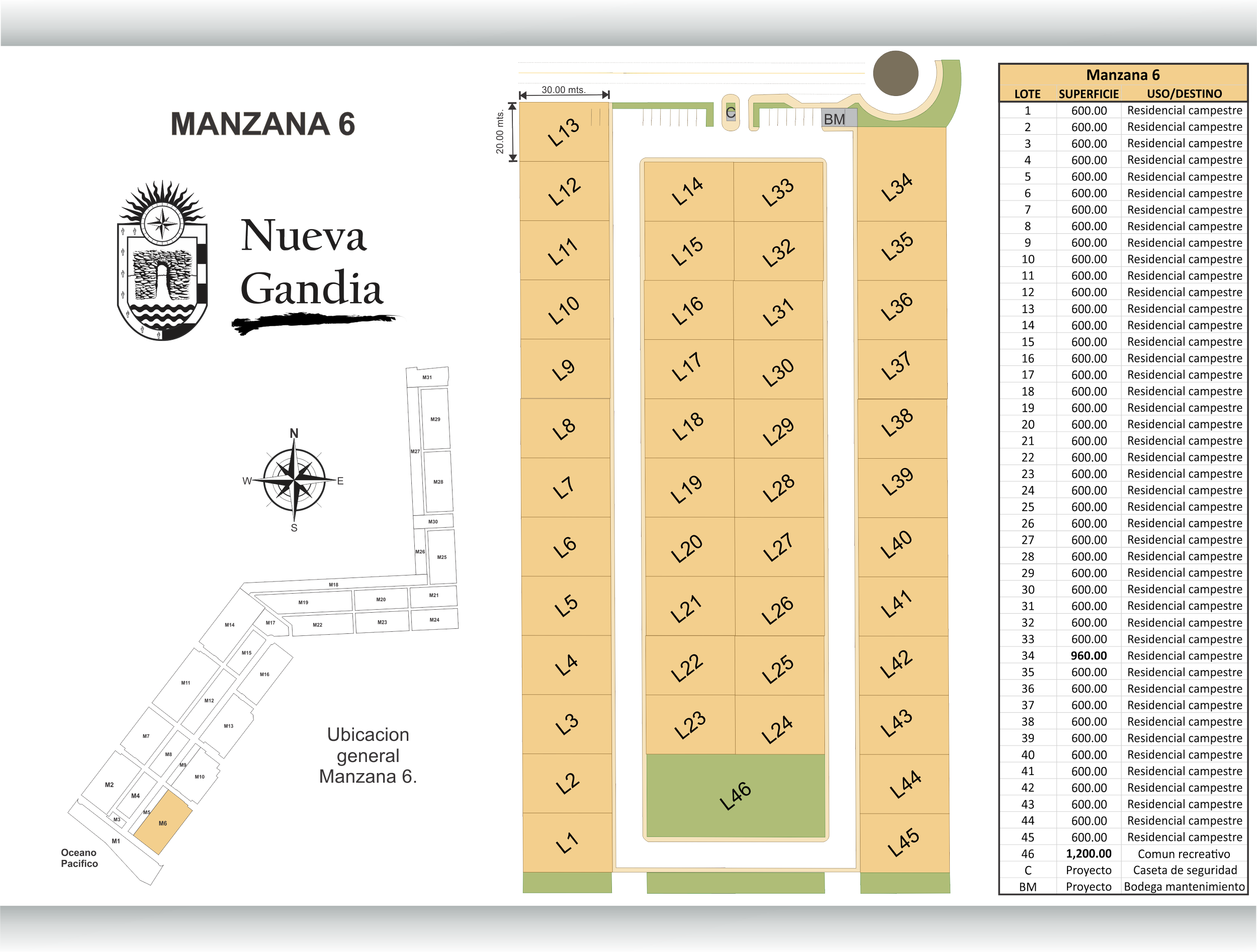 Conoce las manzanas que componen a Nueva Gandia, tendran distintas caracteristicas, cualidades, costo y destino.