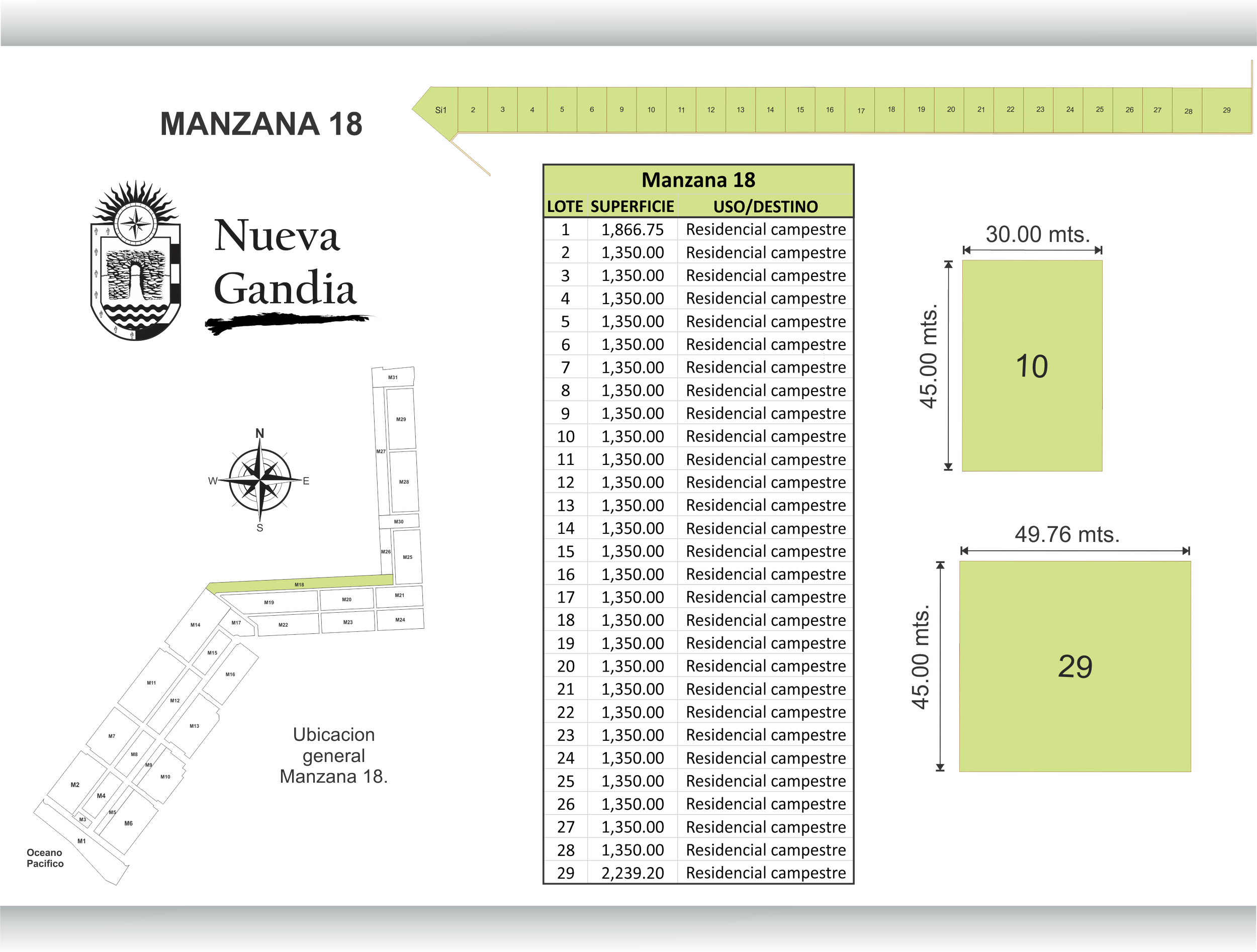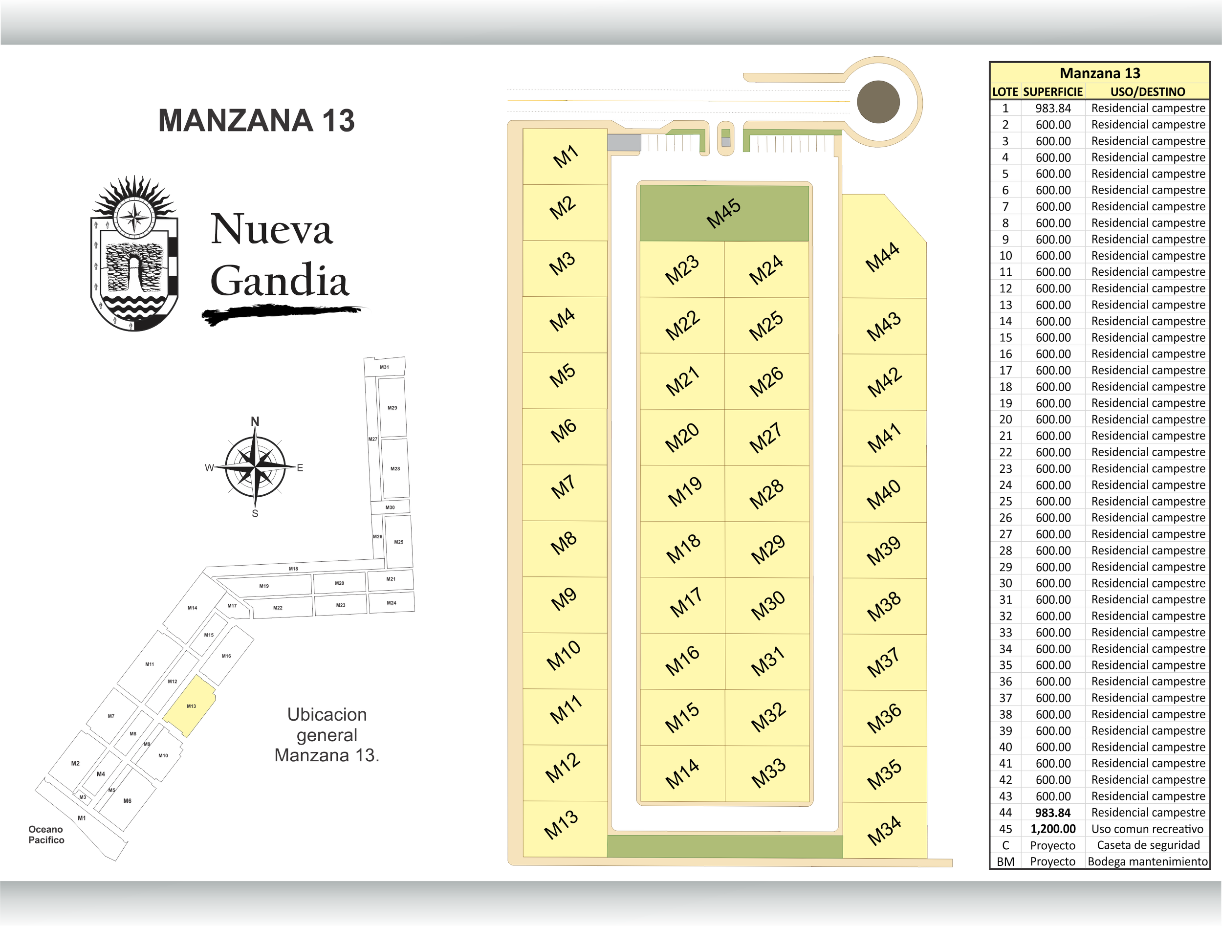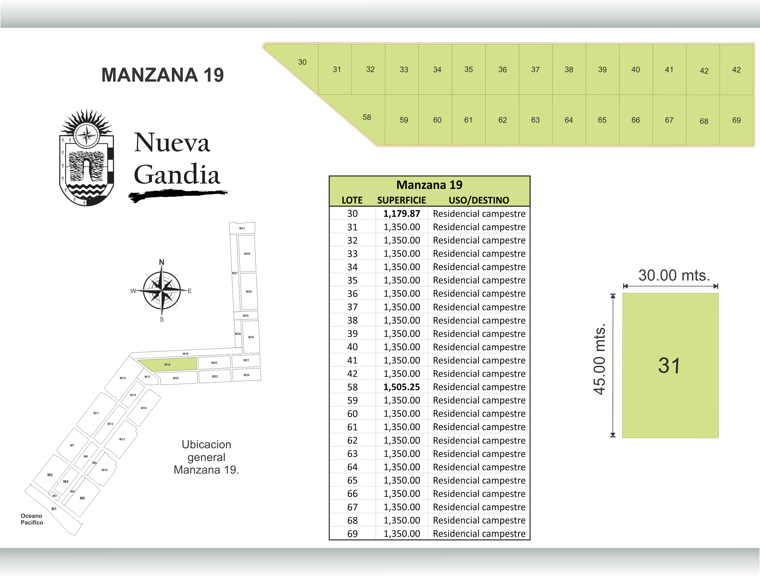 Conoce las manzanas que componen a Nueva Gandia, tendran distintas caracteristicas, cualidades, costo y destino.