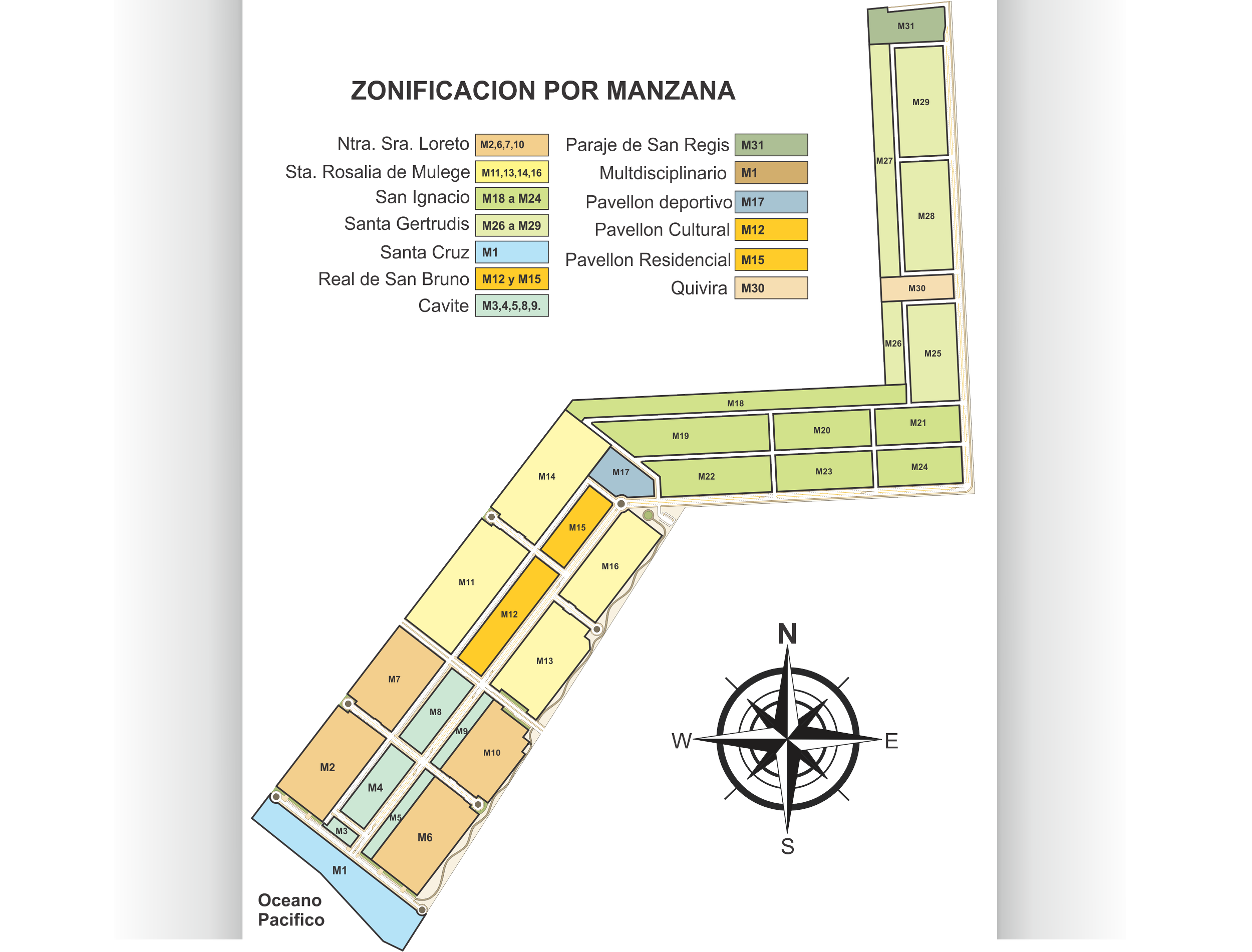 Las manzanas de nuestro proyecto fueron consideradas en areas y zonas inspiradas en la rica historia de nuestra peninsula y personalidades que la formaron.